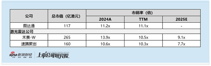 在业务竞争力不足、财务表现疲软的背景下,图达通的估值水平却远超同行,形成明显的估值与业绩错配。此次上市议定估值117亿港元,对应2024年TTM(滚动12个月)市销率达11.1倍,而行业龙头禾赛2024年TTM市销率为10.5倍,速腾聚创为10.3倍。作为一家尚未盈利、客户单一且业务增长受限的企业,图达通的高估值缺乏坚实的业绩支撑,面临较大的回调风险。
