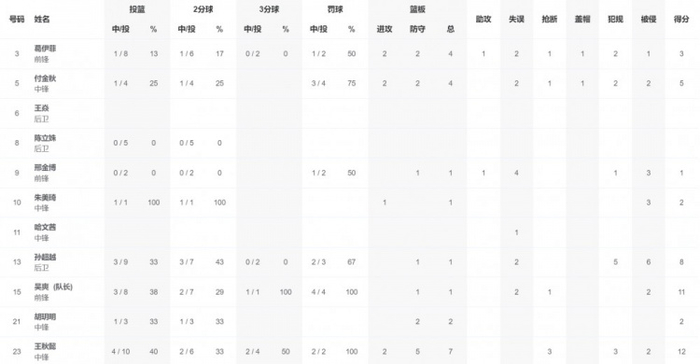 辽宁全运女篮,吴爽11分,王秋懿12分7篮板。