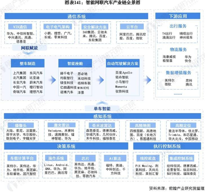与新能源汽车发展逻辑相似,区域规划调整后,新一代电子信息技术制造业能够加速产业链上下游协同,爆发更大潜力。但更重要的是,新一代电子信息技术将与新能源汽车形成强大的协同效应,从而撬动一个超级万亿赛道——智能网联新能源汽车。众所周知,新能源汽车的上半场是电动化,下半场是智能化。智能网联汽车深度融合人工智能、5G、大数据等新一代信息技术,被视为汽车产业转型升级的战略制高点。根据前瞻产业研究院报告,到2025年我国智能网联市场规模将接近万亿元,2030年有望突破5万亿元,“车路云一体化”相关市场规模更是超过14万亿元。而目前,我国市场规模超过10万亿的产业不超过5个。从产业链环节来看,智能网联汽车中短期智能座舱和ADAS将率先落地,长期发展高等级自动驾驶、V2X车联网、围绕出行的服务及应用。