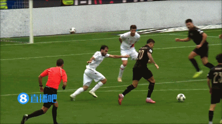 上半场补时阶段,坎塞洛禁区前沿起脚远射,皮球打在防守队员身上有个折射,随后击中立柱弹出↓