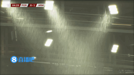 第85分钟,转播镜头给到现场的天气情况,雨势非常大,看台上的球迷们纷纷穿上雨衣↓