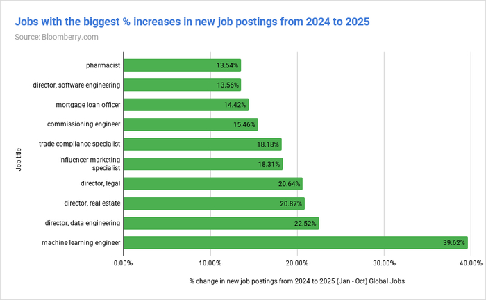 这篇文章算是个民间调查报告吧,作者像个侦探一样,分析了2023至2025年10月期间,近1.8亿个全球招聘信息,然后跟2024年的职位做了一下比较。