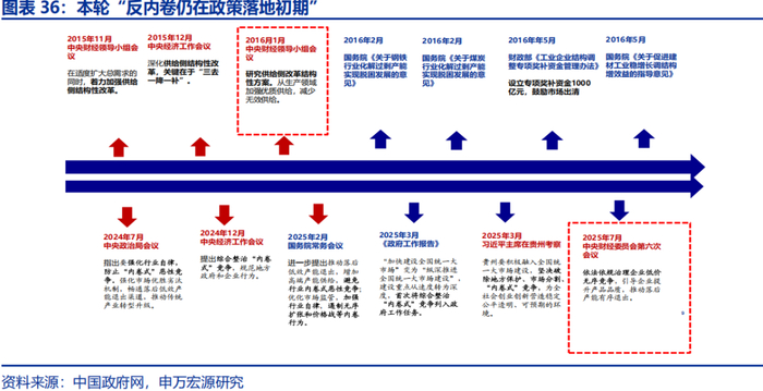 新阶段“供给侧改革”似乎已现雏形,表现为:生产端更加注重高附加值、需求端更加注重以人为本、总量政策打开空间、结构性政策针对性更强。2024年9月底以来政策应时而变,更为适应当前经济发展阶段的需要。2025年赤字率首次突破3%达到4%,四季度又从地方政府债务结存限额中安排 5000 亿元下达地方;应对内外部复杂多变的环境,结构性政策持续推进。“反内卷”等政策直指企业循环阻滞的“症结点”,扩内需政策更强调“投资于物”与“投资于人”的结合。