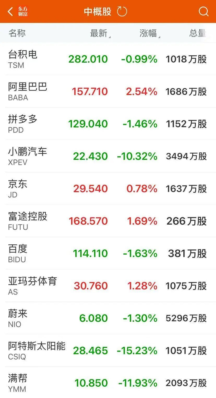 热门中概股多数下跌,纳斯达克中国金龙指数跌1.21%,京东涨0.72%,拼多多跌1.46%,蔚来汽车跌1.30%,小鹏汽车跌10.32%,理想汽车跌4.75%,哔哩哔哩跌0.23%,百度跌1.63%,网易跌1.71%,腾讯音乐跌0.16%,小马智行跌6.16%。