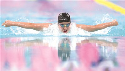 11月17日,第十五届全国运动会游泳女子400米个人混合泳决赛在广东省深圳市举行,河北队选手于子迪在决赛中获得冠军。 新华社记者 薛宇舸 摄
