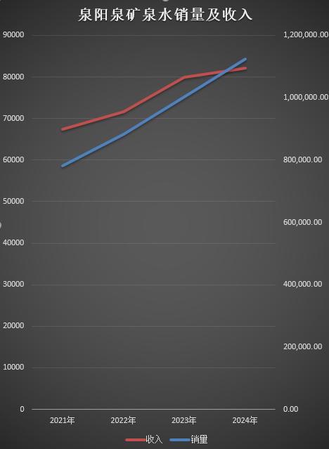 从销售量来看,近几年泉阳泉矿泉水销量保持持续增长,不过收入增速明显落后于销量增速。2022年矿泉水销量增长12.9%,收入仅增长6.16%;2023年销量增长13.6%,收入增长11.66%;2024年销量增长12.09%,收入仅增长2.72%。