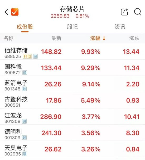 存储芯片板块震荡拉升,佰维存储盘中涨超10%,国科微、江波龙、德明利、澜起科技等跟涨。