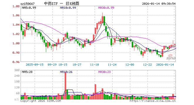1月14日,中药ETF(159647)开盘涨0.10%,报0.996元。中药ETF(159647)重仓股方面,云南白药开盘跌0.05%,片仔癀涨0.01%,同仁堂跌0.19%,东阿阿胶跌0.04%,吉林敖东跌0.15%,华润三九涨0.00%,白云山跌0.16%,以岭药业跌0.34%,佐力药业跌0.18%,达仁堂涨0.15%。