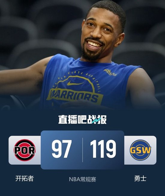 开拓者(19-22):夏普19分2板2助、乐福17分3板7助2断、吕佩尔13分2板2助、霍勒迪12分8板3助、威廉姆斯11分8板、克林根7分9板1助、卡马拉6分4板2助、库克3分3板2助、西索科3分3板、杨瀚森3分2板、里斯3分2板