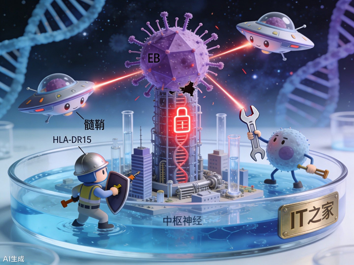 IT之家 1 月 14 日消息,中国科学技术大学研究团队今日在国际顶级学术期刊《细胞》上发表重要研究成果,揭示了爱泼斯坦-巴尔病毒(EBV)感染与特定遗传因素协同作用,共同驱动多发性硬化症(MS)发病的新机制。