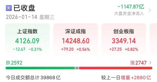 盘中,深证成指、创业板指翻红,收盘分别涨0.56%、0.82%;上证指数翻红后转跌,收盘跌0.31%;北证50指数涨0.98%。全市场今日成交额达到39868亿元。