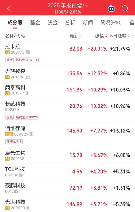 今日,叠加AI产业链等主线行情催化,2025年年报预增个股表现亮眼。