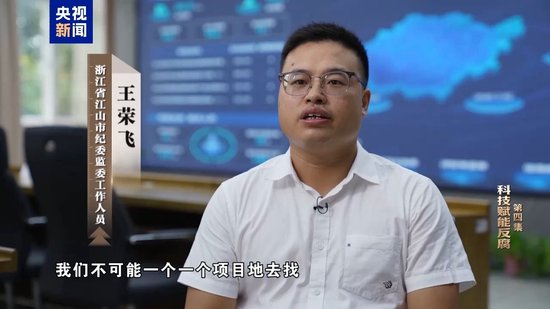 浙江省江山市纪委监委工作人员 王荣飞:招投标量太大了,我们不可能一个一个项目地去找,大数据好就好在这个地方,可以给我们提供相关的线头,那我们有了这个线头之后,我们一步一步地抽丝剥茧。
