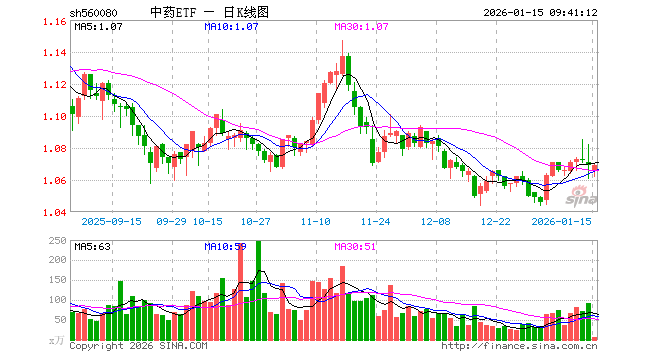 1月15日,中药ETF(560080)开盘跌0.37%,报1.065元。中药ETF(560080)重仓股方面,云南白药开盘跌0.23%,片仔癀涨0.00%,同仁堂跌0.06%,东阿阿胶跌0.37%,吉林敖东跌0.45%,华润三九跌0.31%,白云山涨0.00%,以岭药业跌0.22%,佐力药业涨0.00%,达仁堂跌0.07%。