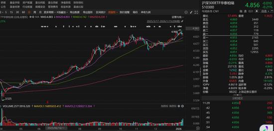 1月15日上午,多只宽基ETF成交量放大。其中,全市场规模最大的华泰柏瑞沪深300ETF半日成交125亿元,超过了2025年4月9日以来的最高日成交额。