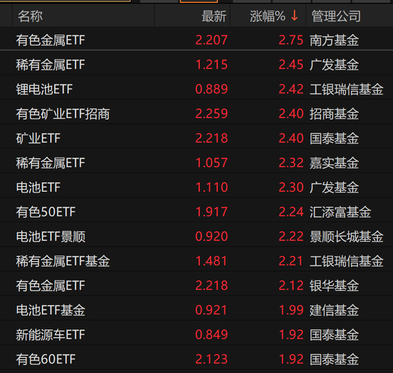 有色金属相关ETF领涨