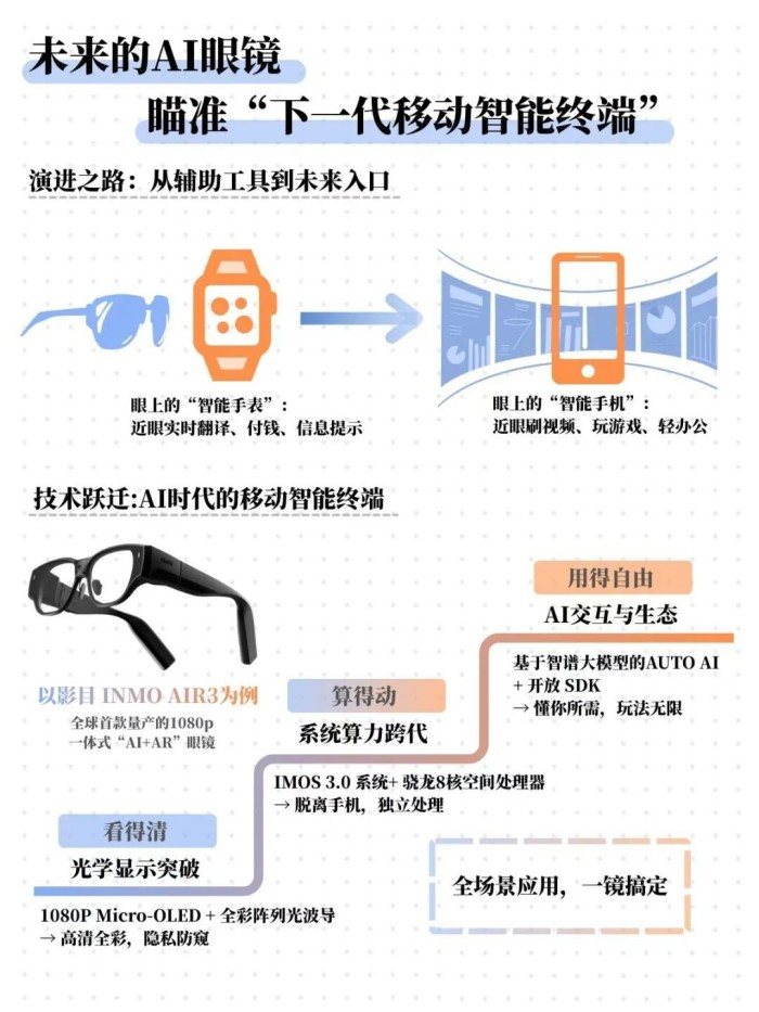 2023年,全球首款AI眼镜INMO GO横空出世,此举代表行业正式进入“AI 时代”;