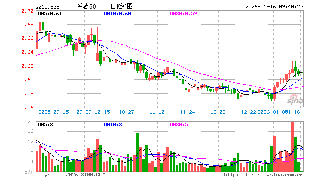 1月16日,医药50ETF(159838)开盘涨0.49%,报0.610元。医药50ETF(159838)重仓股方面,药明康德开盘涨0.02%,恒瑞医药涨0.28%,迈瑞医疗涨0.21%,联影医疗涨0.14%,片仔癀涨0.12%,爱尔眼科涨0.26%,长春高新涨1.40%,科伦药业涨0.03%,新和成跌0.16%,华东医药涨0.10%。