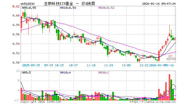 生物科技ETF基金(516930)开盘涨0.00%,重仓股药明康德涨0.02%,恒瑞医药涨0.28%