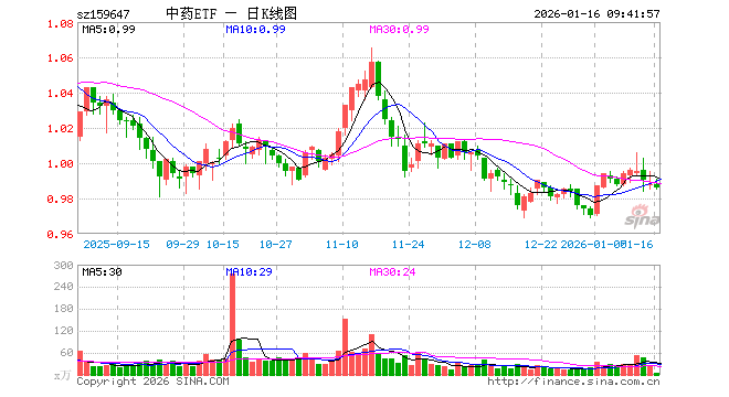 1月16日,中药ETF(159647)开盘涨0.00%,报0.988元。中药ETF(159647)重仓股方面,云南白药开盘涨0.32%,片仔癀涨0.12%,同仁堂涨0.19%,东阿阿胶跌0.39%,吉林敖东涨0.55%,华润三九涨0.24%,白云山涨0.12%,以岭药业涨0.00%,佐力药业跌0.18%,达仁堂跌0.35%。