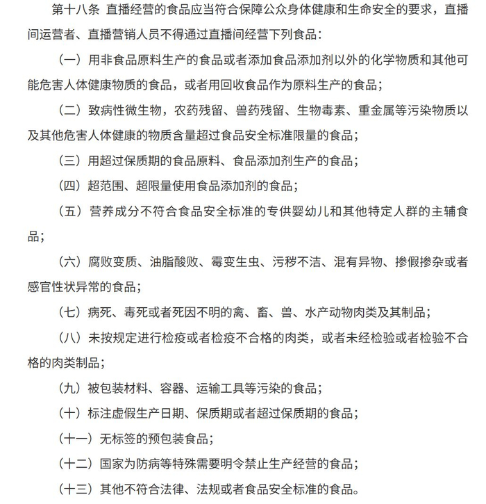 这些规定直接回应了消费者最关心的食品安全底线问题,为直播间食品划定“红线”。