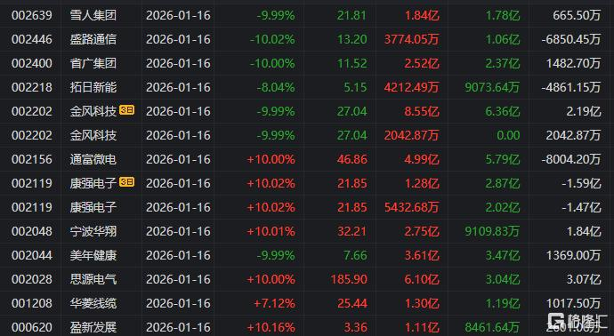 温州帮:净买入佰维存储1.481亿元、思源电气5926万元、甬矽电子4097万元、七彩化学3875万元;净卖出拓日新能1.877亿元