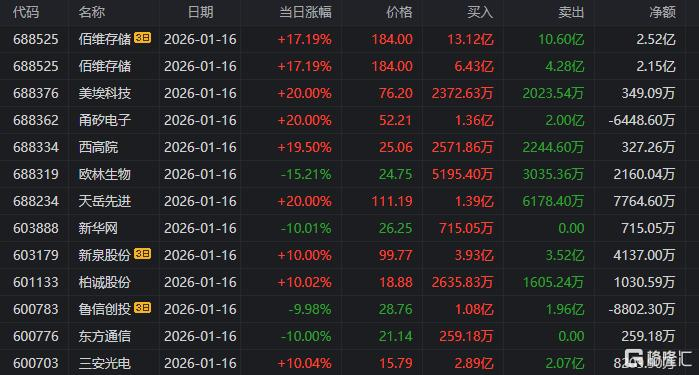 龙虎榜 | 机构狂抛佰维存储近13亿!深南东路、章盟主爆买美年健康