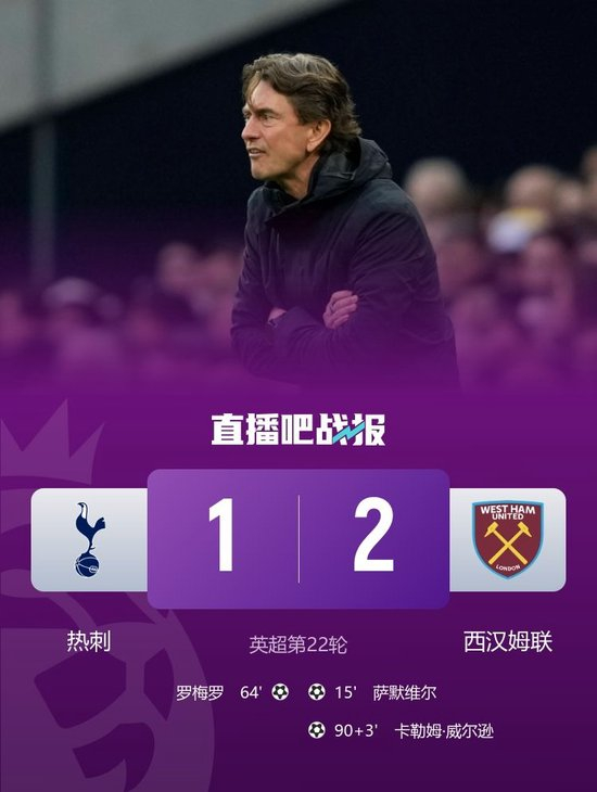 直播吧1月18日讯 北京时间1月17日晚23时整,2025-26赛季英超第22轮在新托特纳姆热刺球场展开角逐,热刺主场迎战西汉姆联。上半场萨默维尔单挑防线首开记录,本戴维斯伤退,下半场罗梅罗头球扳平,威尔逊补时绝杀。最终热刺主场1-2不敌西汉姆联,热刺遭遇各赛事3连败+联赛7轮仅1胜,积27分位居第14名,西汉姆联终结10轮不胜。