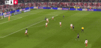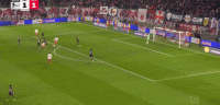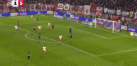 第14分钟,凯恩直塞,卡尔突入禁区传中,球传大了