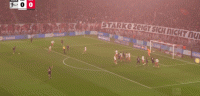 第3分钟,球迷燃放烟火,现场烟雾缭绕